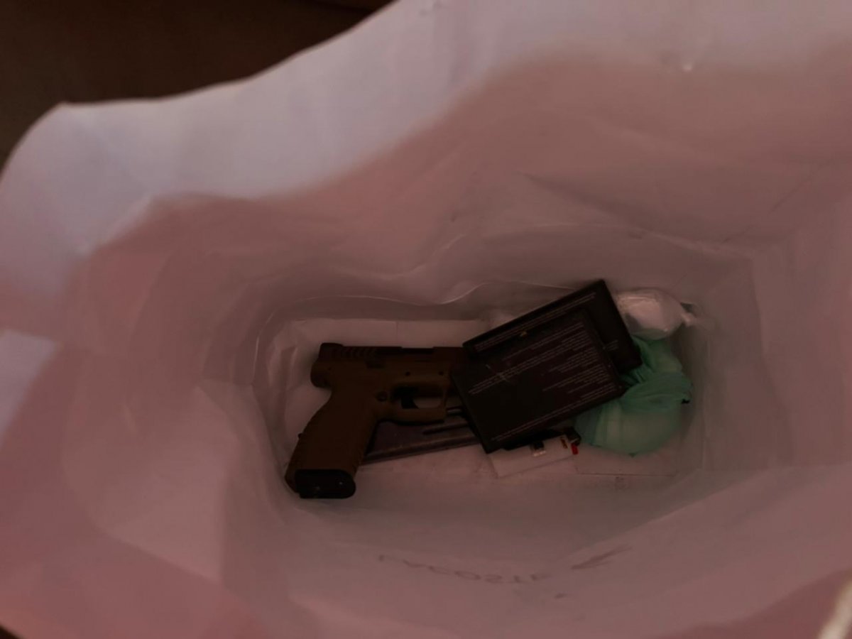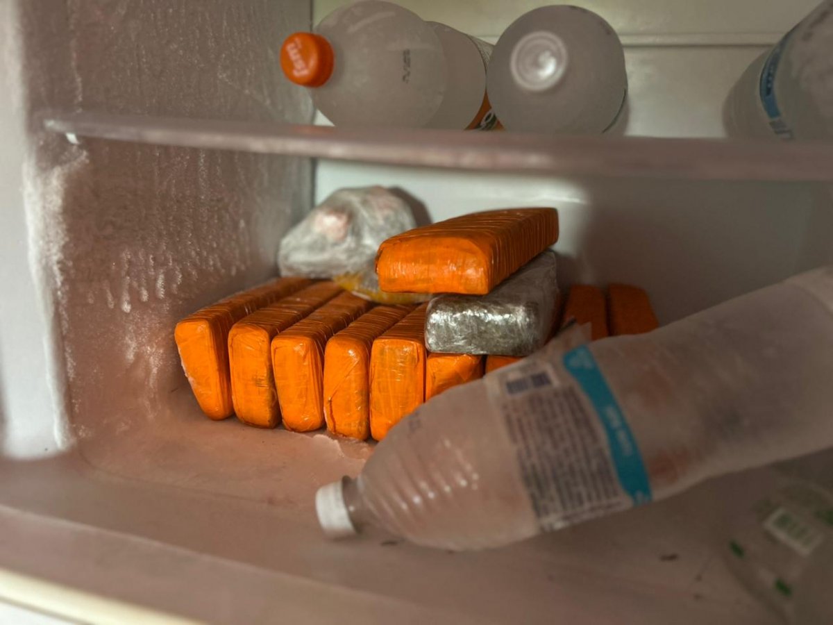 Os suspeitos, um homem e uma mulher não identificados, estavam em uma casa onde foi localizado tabletes de cocaína e maconha, pistola, carregadores alongados, câmera, munições, balanças, entre outros itens.