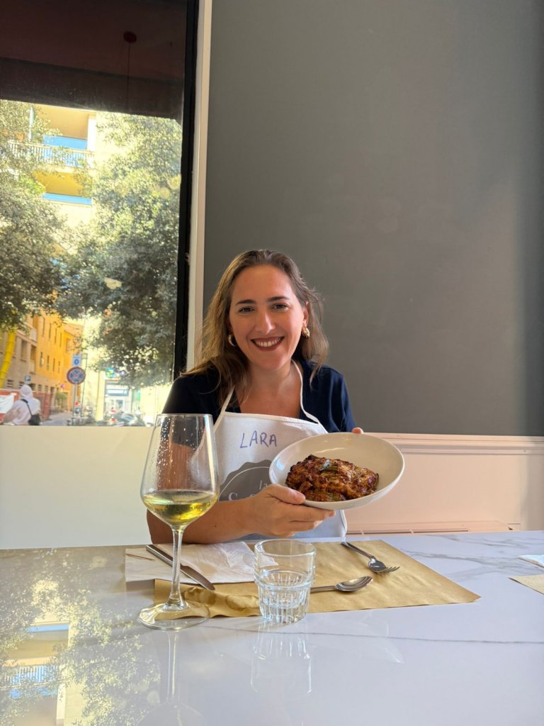 O ponto alto da viagem foi a aula com Alessandra Spisini, figura icônica da gastronomia bolonhesa e professora requisitada na Bolognese Cooking School, onde Lara participou de um curso intensivo sobre massas em geral.