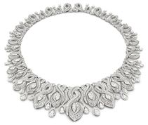 Colar Bulgari Eden High Jewelry em platina com 1 diamante pera (5,07 ct), 16 diamantes marquise (11,32 ct), 124 diamantes de formato fancy (15,96 ct), 1 diamante redondo lapidação brilhante e diamantes cravejados em pavé (3,33 ct)