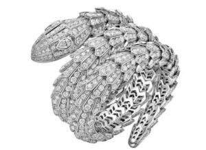Pulseira Alta Joalheria Serpenti em ouro branco cravejado com 2 diamantes talhe brilhante pera (0,80 ct) e pavé de diamantes (48,82 ct)