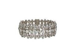 Pulseira em platina com diamantes, ca. 1960. Pulseira cravejada com 14 diamantes em lapidação brilhante, com peso total de 7,7 ct, 14 diamantes com lapidação brilhante, com peso total de 5,5 ct e 342 diamantes com lapidação brilhante e huit/huit, com peso total de 18,4 ct.