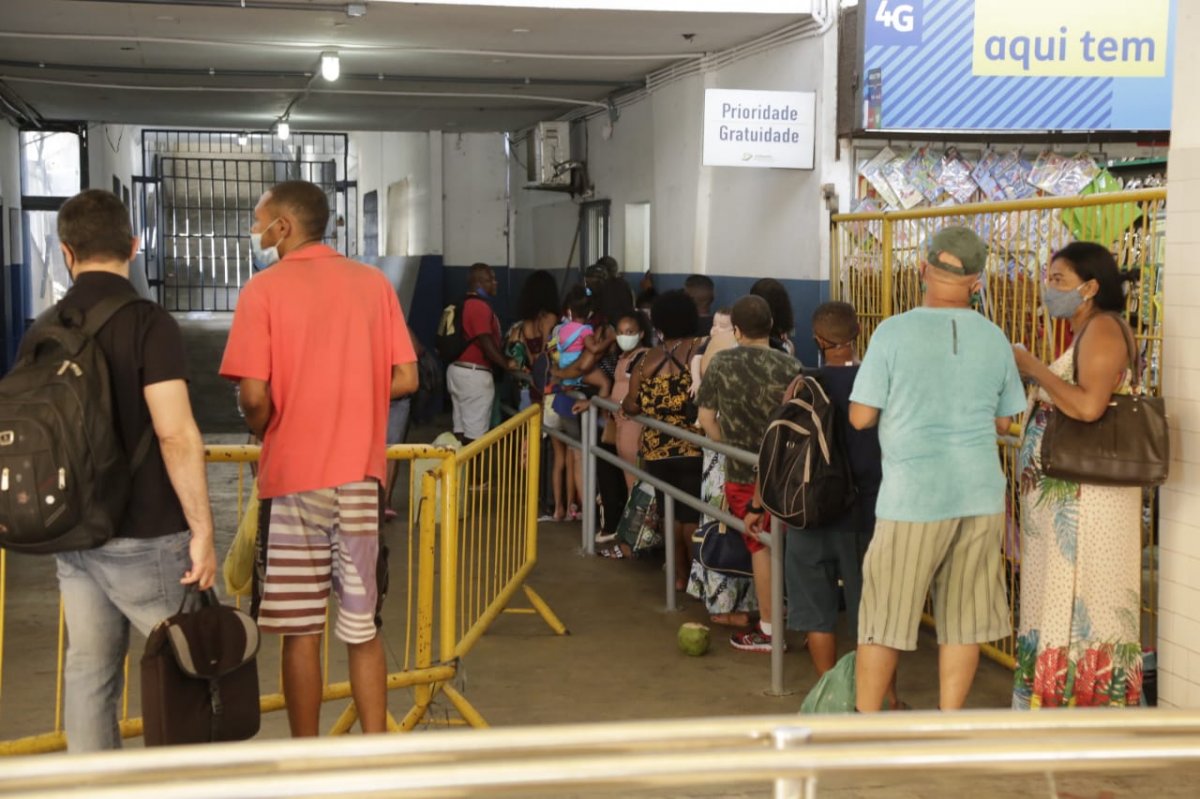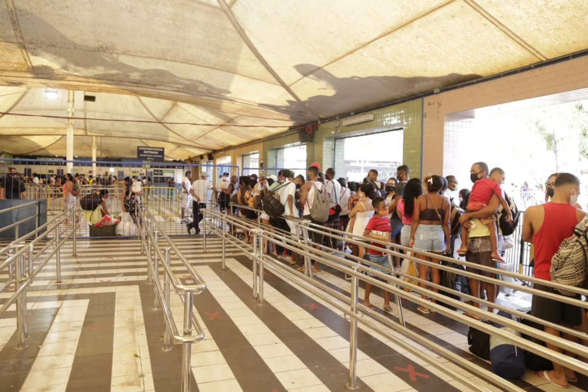 O movimento no terminal de São Joaquim, na capital baiana, na tarde desta sexta-feira (9), véspera do feriadão, é moderado, as filas são pequenas e o embarque é imediato. Porém, a fila para pedestres não tem demarcações para o distanciamento e provoca aglomeração. Não há uma orientação de funcionários da  Internacional Travessias Salvador, administradora do sistema Ferry-Boat.