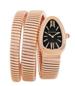 Relógio Serpenti Tubogas em ouro rosé 18K com visor preto e moldura de diamantes