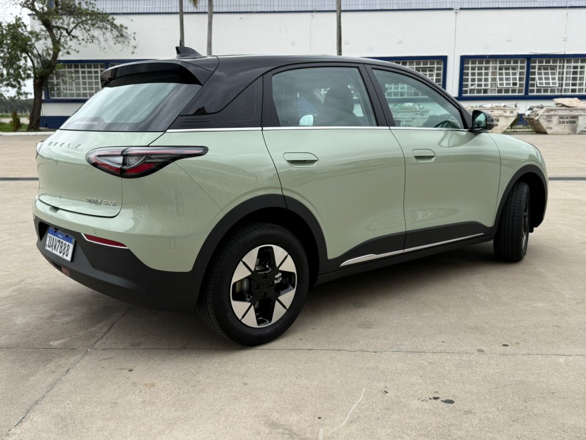 No Brasil a Geely optou por oferecer a versão mais potente com 116cv e 15kgfm de torque com bateria de 40kwh para 410km no ciclo CLTC ou 289km no Inmetro .