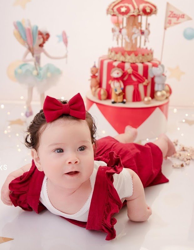 O jogador Hulk Paraíba, celebrou nesta quinta-feira, os quatro meses de vida de sua filha caçula, Zaya, fruto de seu relacionamento com Camila Angelo. O casal posou ao lado da pequena para um ensaio, que teve Circo como tema.