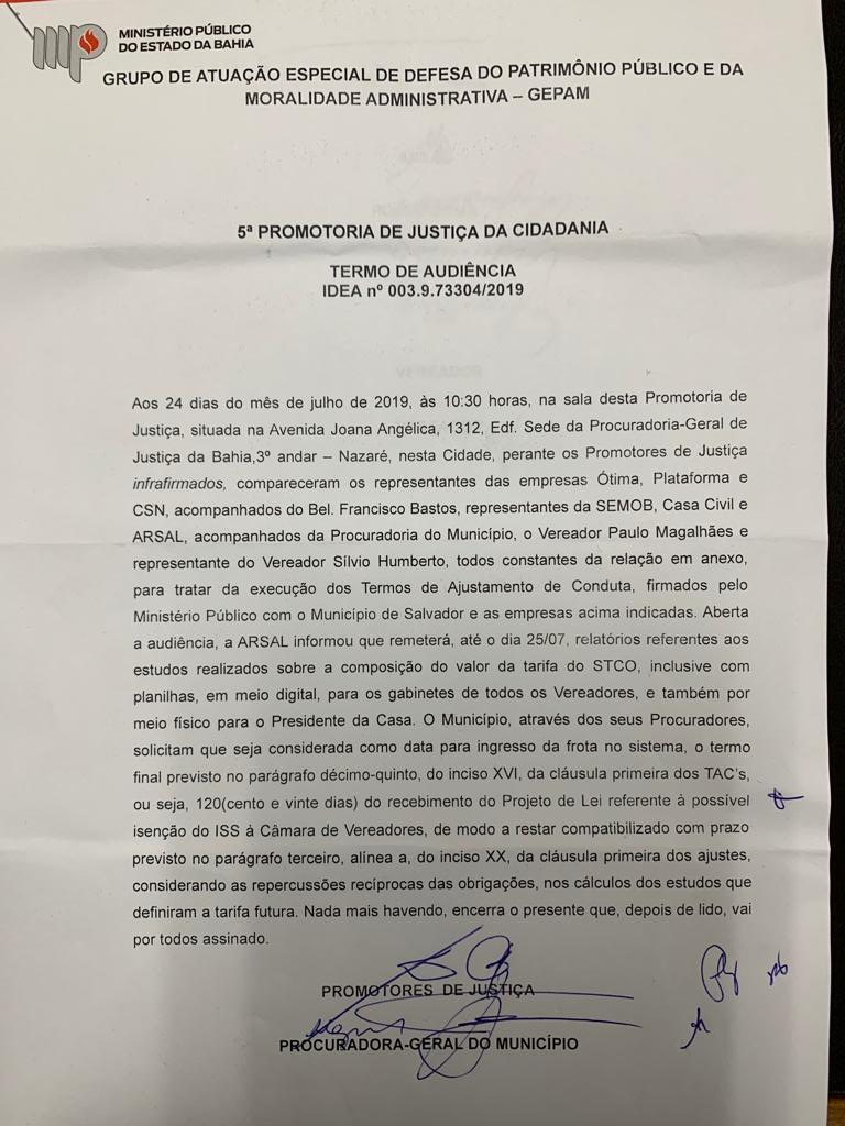 Nos dias 5 ou 6 de agosto, a promotora Rita Tourinho, juntamente com outros membros do MP, estará presente na sessão da Câmara, para ajudar na explicação do TAC firmado entre a Prefeitura e as concessionárias.