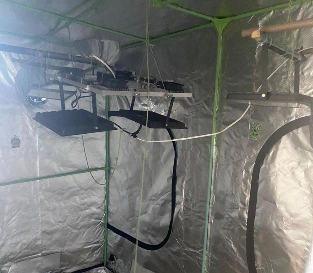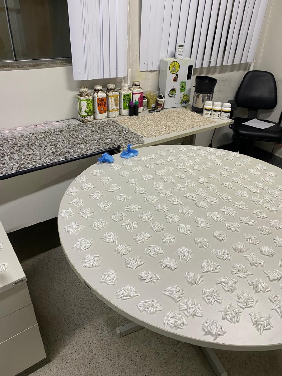 Os oficiais realizaram buscas pelo local, mas não encontraram o suspeito. No laboratório, os policiais identificaram uma estrutura organizada para preparo e distribuição de drogas, incluindo estufa climatizada destinada ao cultivo de maconha.