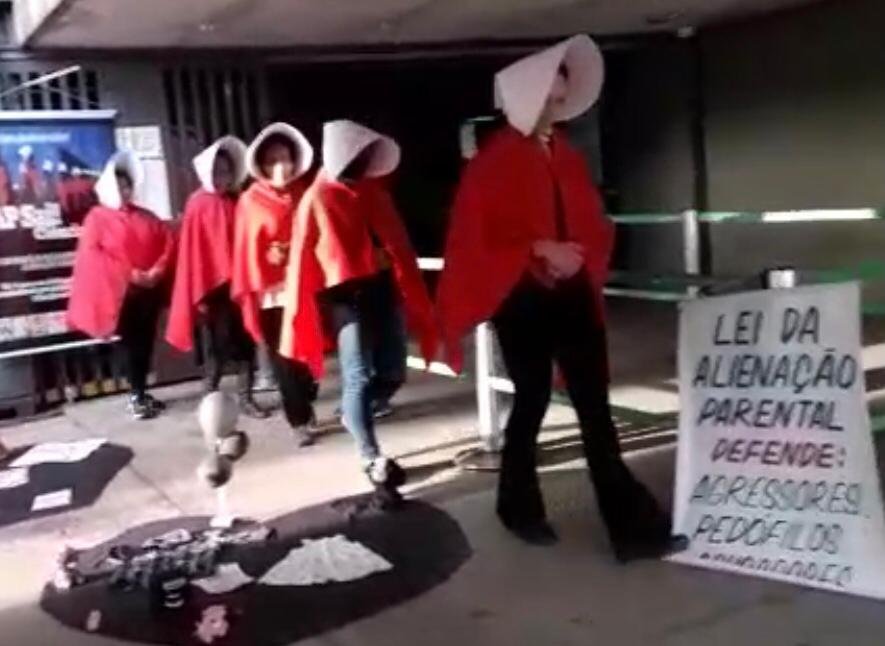 A manifestação das mães vítimas de alienação parental, em Brasília, visa chamar a atenção de parlamentares para esse debate. Durante o ato, as mães usaram um figurino semelhante ao dos personagens da série O Conto da Aia.