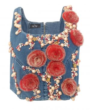 Para completar o look, o ateliê de luxo NOSF apresenta jaquetas finalizadas com lantejoulas, paetês e vidrilhos. O humor festivo e divertido da marca dá o tom das peças exclusivas bordadas à mão, desenvolvidas de forma minuciosa e com acabamento manual de qualidade elevada. Outra opção da NOSF são os corseletes que não deixam de lado a ousadia e criatividade.