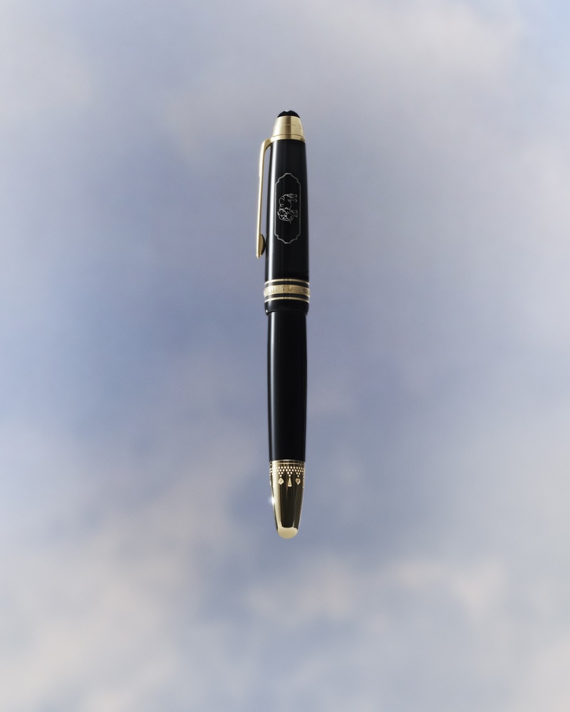 - Meisterstück Volta ao Mundo em 80 Dias Edição Limitada 811 com tampa de prata esterlina Ag925 com acabamento vintage e gravação de boa sorte indiano, chinês e japonês, apresentando um elefante na selva fundido em ouro Au750 maciço gravado. Feito de madeira de ébano com um padrão gravado, o corpo é decorado com uma incrustação em ouro maciço Au750 inspirada nas cinco moedas da Dinastia Qing. O clipe de prata esterlina Ag925 é cravejado com um naipe de diamante laqueado vermelho, enquanto a pena de ouro maciço Au750, gravada com um design de joalheria inspirado na princesa Aouda, é cravejada com rubi de 1,5 mm. Um emblema Montblanc em madrepérola coroa o instrumento de escrita.