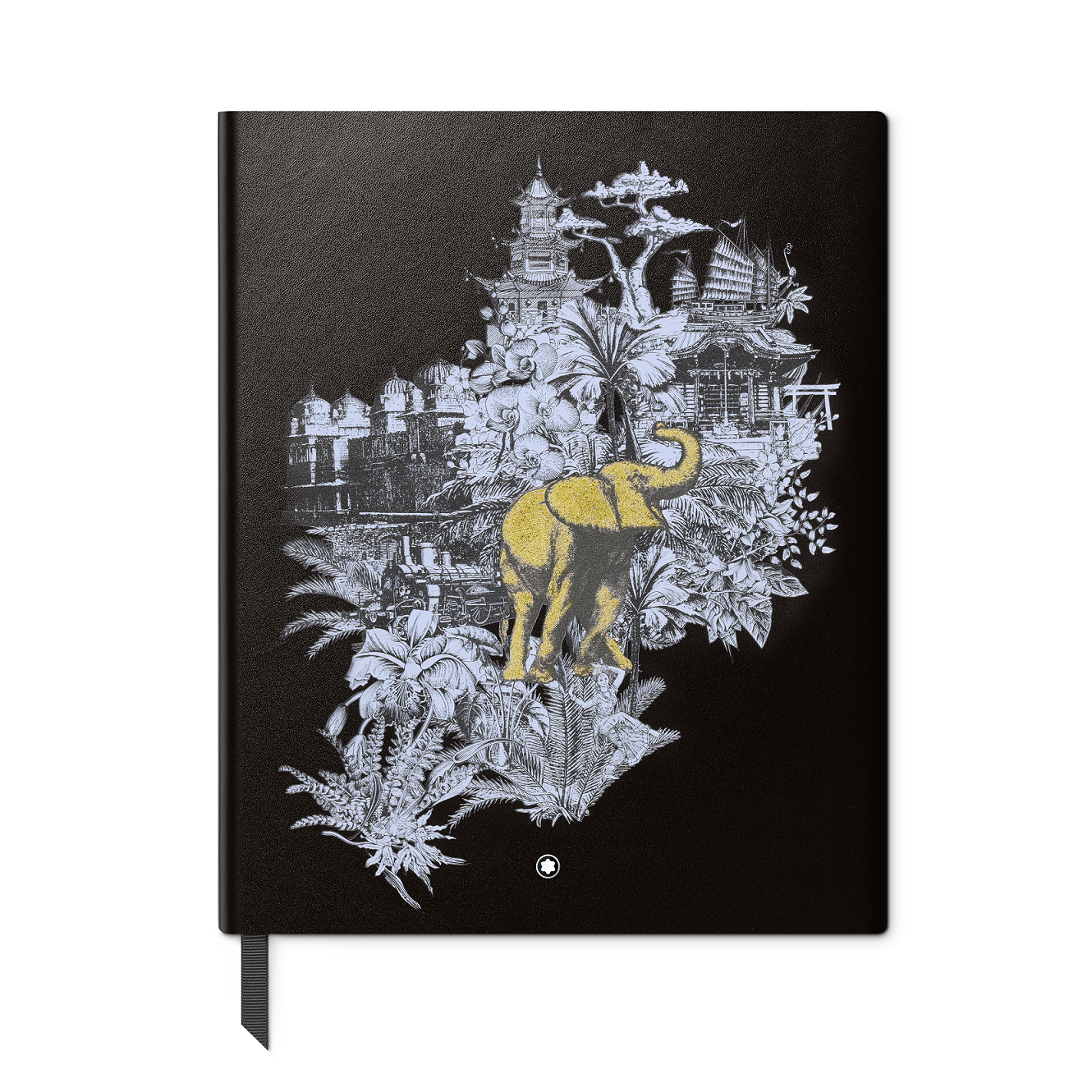 - Um conjunto de papelaria acompanha a edição de escrita com um caderno de couro na cor antracite com uma intrincada expressão do elefante na selva em sua capa, bem como uma tinta especial em cor antracite disponível em cartuchos ou tinteiro.