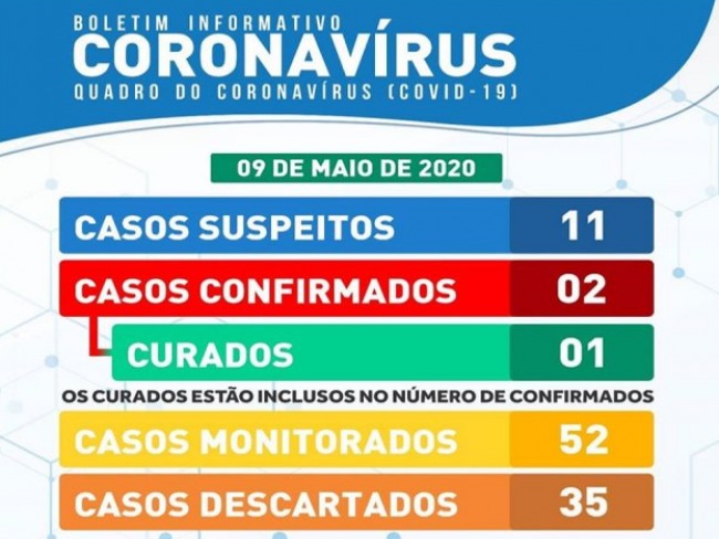 Segundo o boletim, a cidade já possui dois casos positivos da doença, sendo que ao menos um desses infectados já está curado. Ao menos 52 pessoas estão em fase de monitoramento e 35 casos já foram descartados.