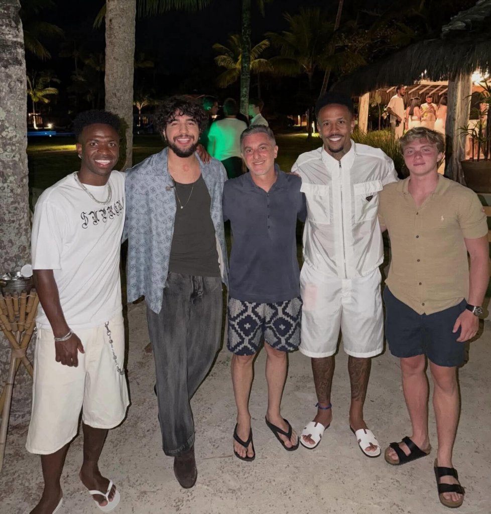 Nattan está em Trancoso e mostrou quem mais está por lá: os jogadores Vinícius Júnior e Éder Militão, além de Luciano e Benício Huck.  Segundo o cantor, o primeiro show no local acontece durante uma festa exclusiva de pré-réveillon, organizada por Vini Jr. e Virgínia Fonseca.