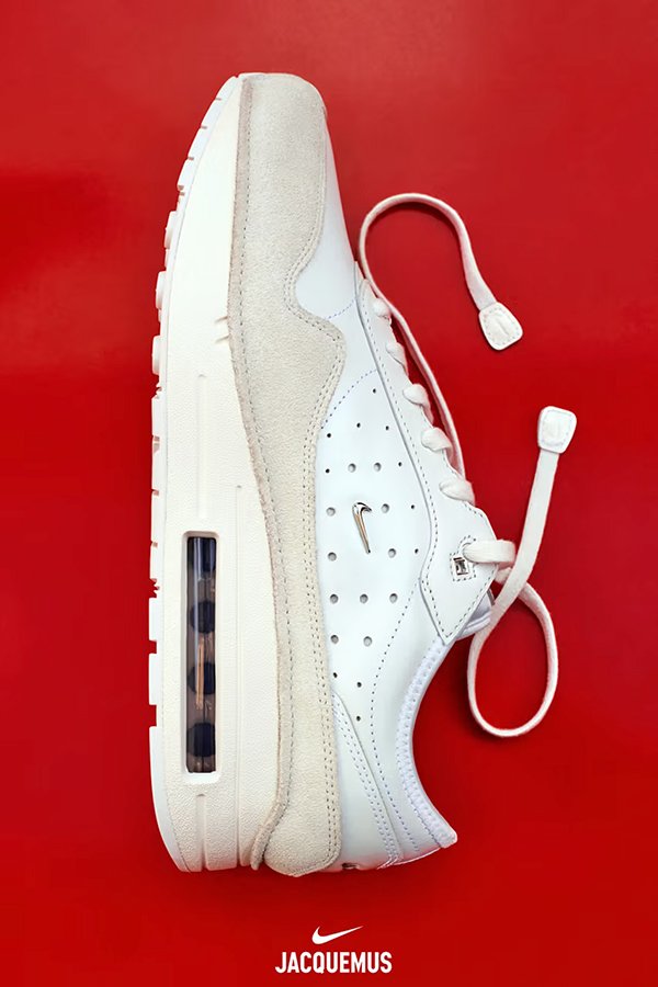 Nike e Jacquemus lançam reinterpretações do Air Max 1, com uma silhueta mais robusta, composta por um cabedal que mistura malha e couro. Os símbolos de ambas as marcas aparecem tanto na língua quanto no solado e os tênis ganharam três variações de cores: prata, branco e vermelho. A data de lançamento ainda não está confirmada, mas deve acontecer nas próximas semanas.