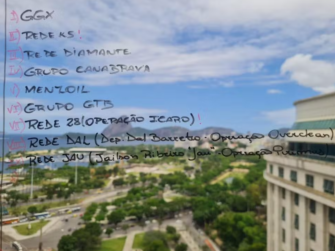 O material apreendido inclui ainda listas de pessoas, empresas e operações, além de referências como “mapeamento do Judiciário”, “mapeamento das Procuradorias estaduais”, “mapeamento do ministério” e “mapeamento dos portos”. Segundo investigadores, trata-se de um levantamento interno produzido pela própria Refit.