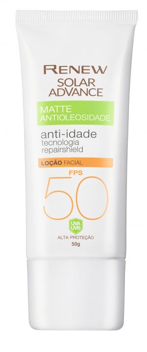 Protetor Solar Facial Renew Advance Matte Anti-Idade FPS50: Ótimo aliado no dia-a-dia, ajuda na proteção contra os danos dos raios solares e da luz azul, enquanto garante uma pele sequinha o dia todo! Possui fórmula não oleosa, leve, de fácil absorção, e que deixa a pele com toque seco e efeito matte o dia todo*. Também conta com a exclusiva tecnologia Repair Shield. Ajuda a proteger contra os efeitos nocivos dos raios UVA/UVB e estimula a reparação das células danificadas por raios UV, reparando 50% dos danos causados pelo sol na pele em 24 horas**.