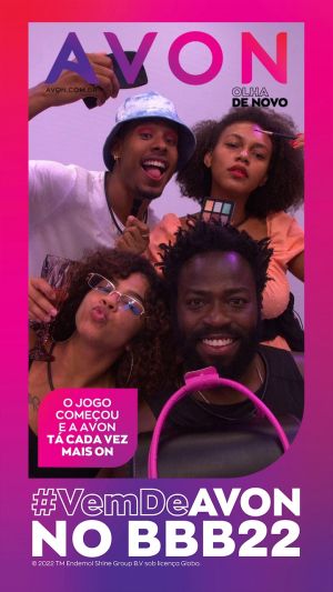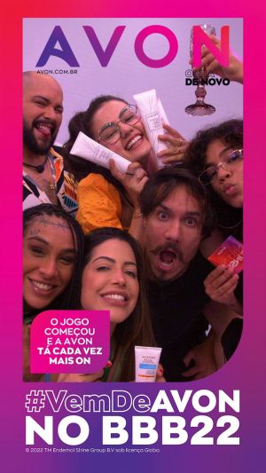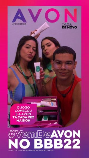 Combinado ao sucesso da edição anterior do reality show, este ano a Avon enxerga como oportunidade levantar e defender cada vez mais as suas bandeiras de pioneirismo e inovação por meio das categorias da marca, ainda estimular a diversidade, o empreendedorismo e empoderamento feminino. Com a campanha #VemDeAvon, o BBB22 contou com a flagship “O Fantástico Mundo de Avon” com estações temáticas para que os brothers e sisters pudessem interagir e escolherem seus produtos preferidos de skincare, cuidados com o corpo, fragrâncias e maquiagem.