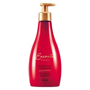 Loção Hidratante Encanto Irresistível & Poderosa: com textura envolvente e deliciosa, deixa a pele nutrida, suave e macia, além de aparência de pele saudável e aveludada. Protege contra os odores da transpiração já que sua fragrância é de longa duração. Possui manteiga de karitê e restaura a hidratação da pele seca por até 48h. Sua absorção é rápida e não deixa a sensação oleosa na pele.
