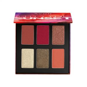 Paleta de Sombras para Olhos Avon Into The Sunset: possui seis tons inspirados no pôr-do-sol, com cores quentes e iluminadas e acabamento do matte ao metálico.