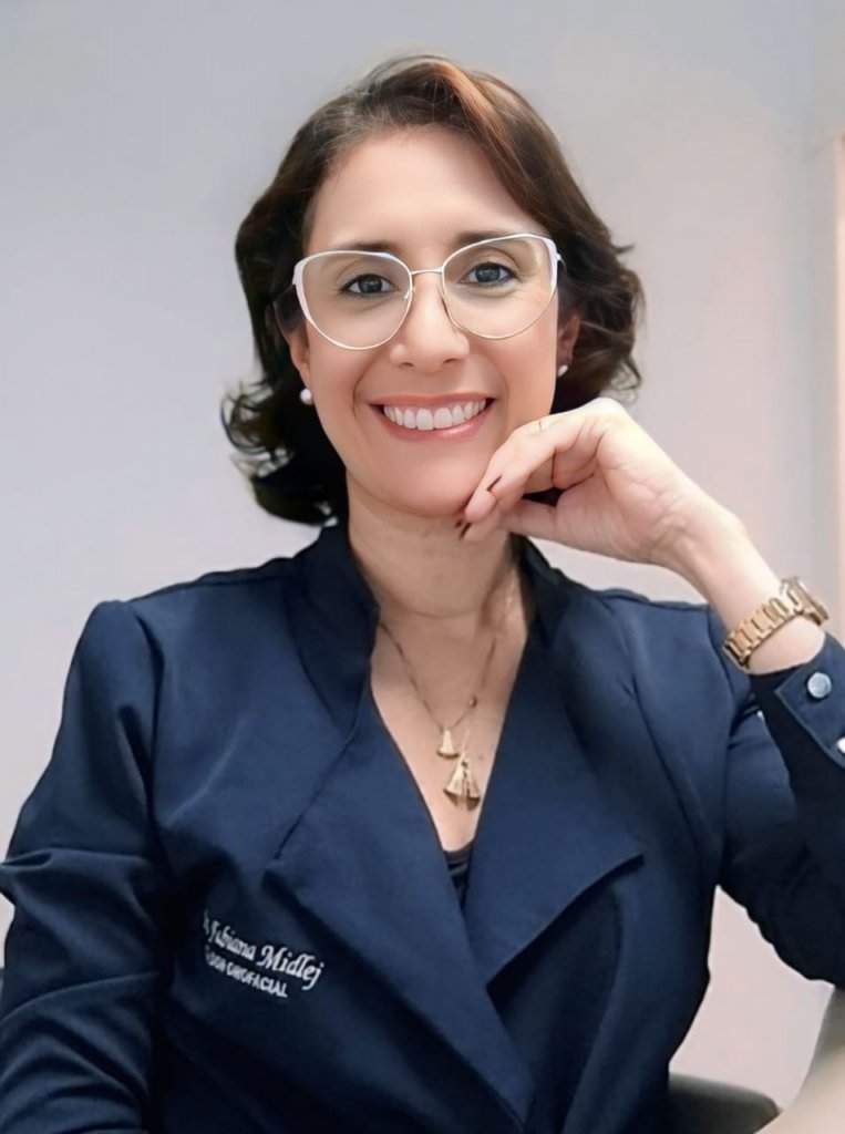 Fabiana Midlej é baiana, natural de Ilhéus e reside em Salvador desde o primeiro ano de vida. Com mais de 25 anos de experiência em Reabilitação Oral, Disfunção Temporomandibular (DTM), Dor Orofacial e bruxismo (tanto do sono quanto em vigília), construiu uma trajetória marcada pela excelência técnica e pelo atendimento humanizado. Graduada em Odontologia pela Universidade Federal da Bahia (UFBA), é especialista em Disfunção Temporomandibular e Dor Orofacial pela Unicamp e em Prótese Dentária pela ABENO-SP. Integra o corpo clínico do Centro de Oclusão e Articulação Temporomandibular da UFBA, onde atua como preceptora, pesquisadora científica permanente e no atendimento clínico ambulatorial. Atualmente mantém atendimento exclusivo em Salvador nas áreas de DTM e Dor Orofacial, com foco nas relações e interações clínicas desses distúrbios.