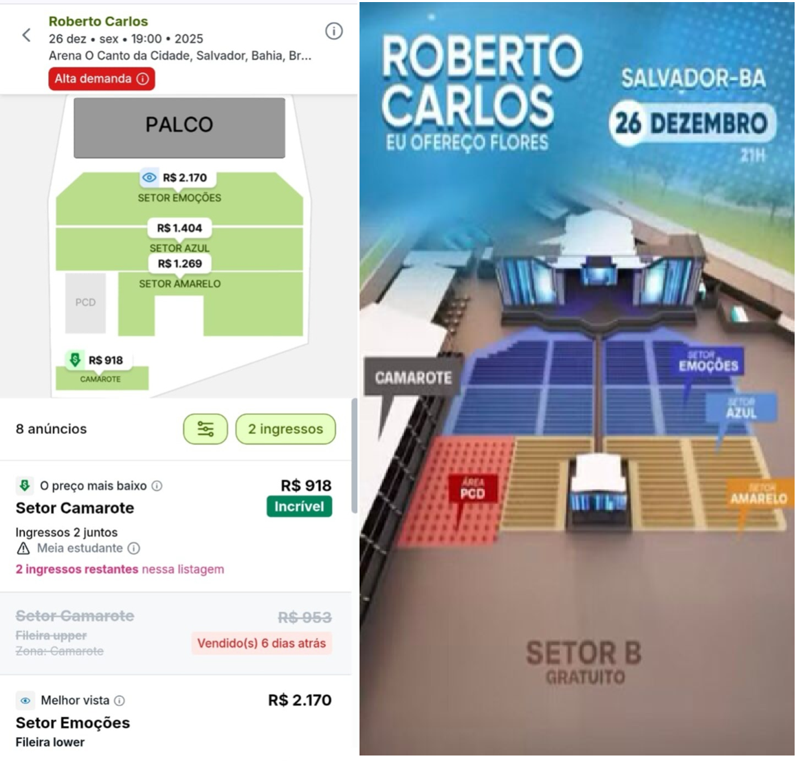 O show do Rei Roberto Carlos em Salvador foi a prova viva do apartheid social que a gestão Bruno Reis impõe a população da cidade. Lá na frente, no conforto e com vista ótima, os amiguinhos e menudos. No fundão, longe e apertados no tumulto, o povo...