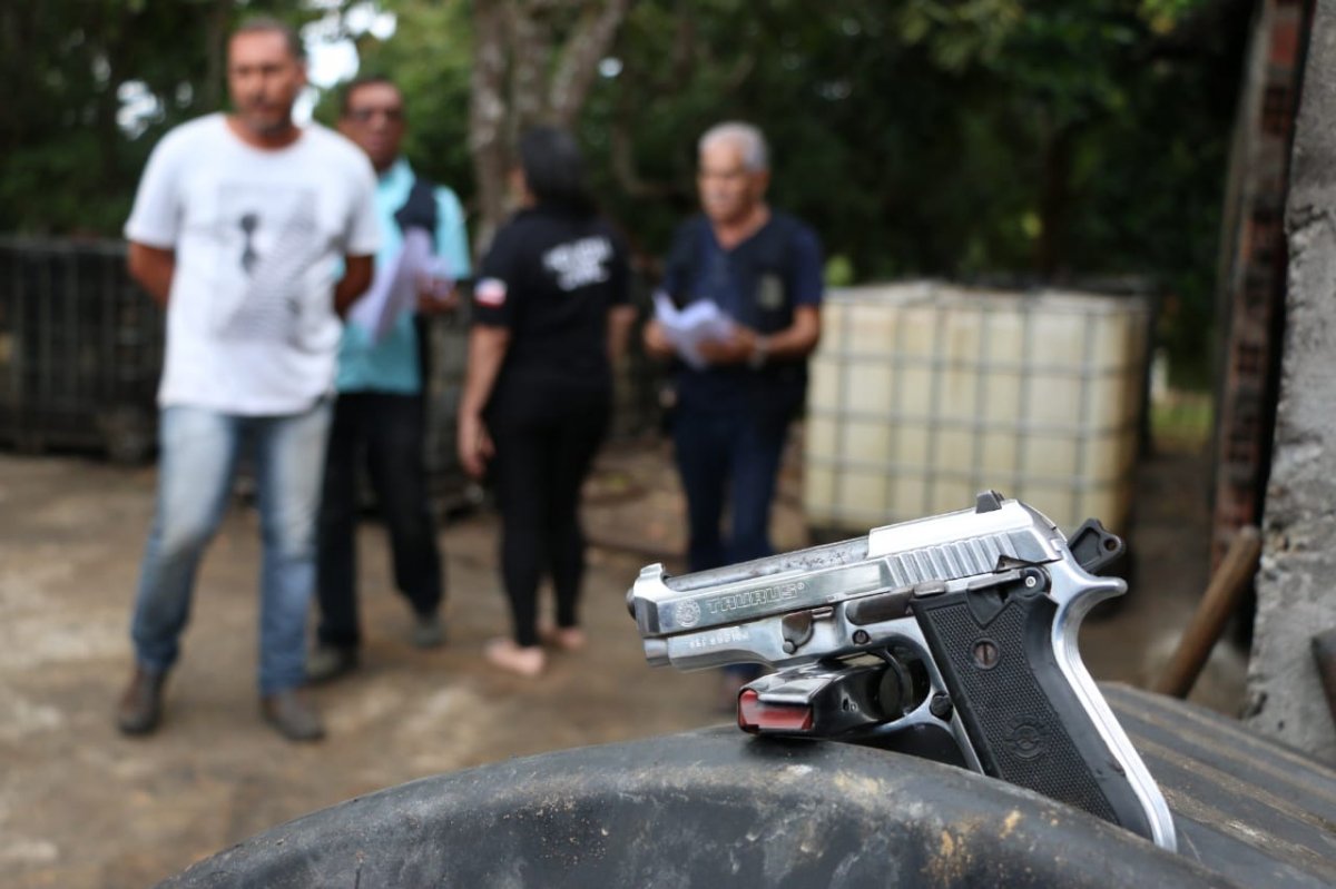 Além disso, uma pistola calibre 380, carregador e munições foram localizados em cômodos do estabelecimento. O proprietário foi preso em flagrante.