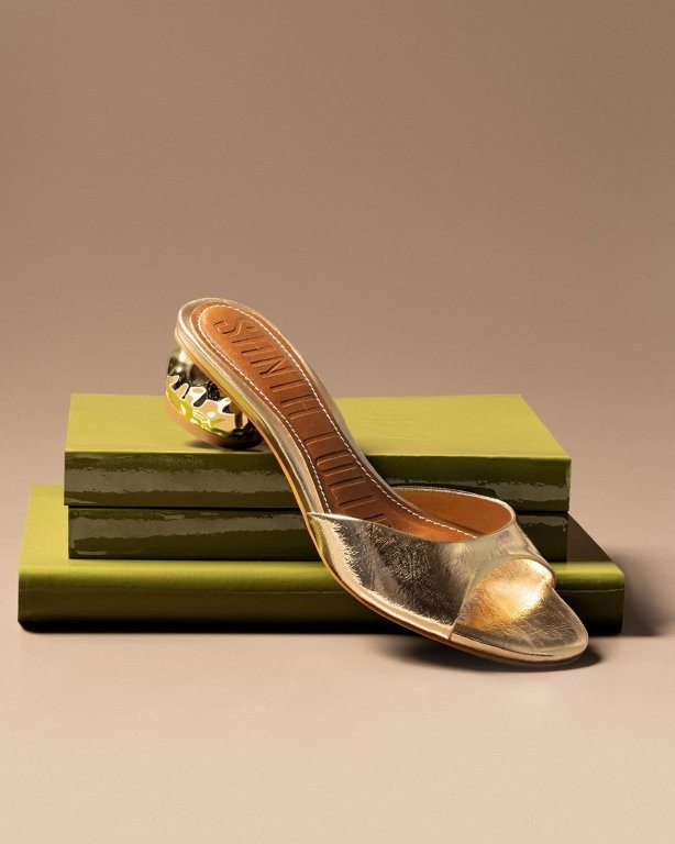 Os saltos esculturais são a escolha perfeita para quem quer transformar o sapato no protagonista do look. Com formas orgânicas ou geométricas que fogem do tradicional, o design cria um efeito visual marcante e contemporâneo. Por isso, eles ganham destaque quando usados em looks monocromáticos ou composições mais minimalistas, deixando o salto assumir o papel de ponto focal da produção.