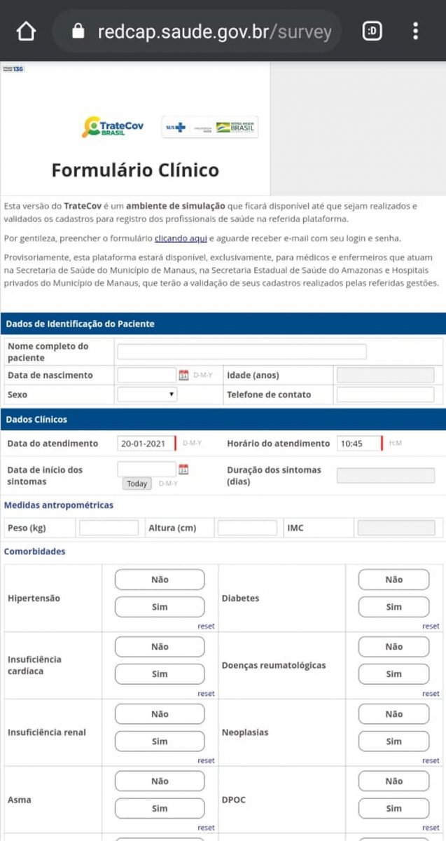 A plataforma foi lançada, inicialmente, apenas para profissionais de Saúde de Manaus, mas qualquer pessoa podia acessar, preencher o cadastro e obter as receitas. A cidade enfrenta um cenário de caos pela falta de oxigênio para pacientes, e recordes de mortes por Covid.
