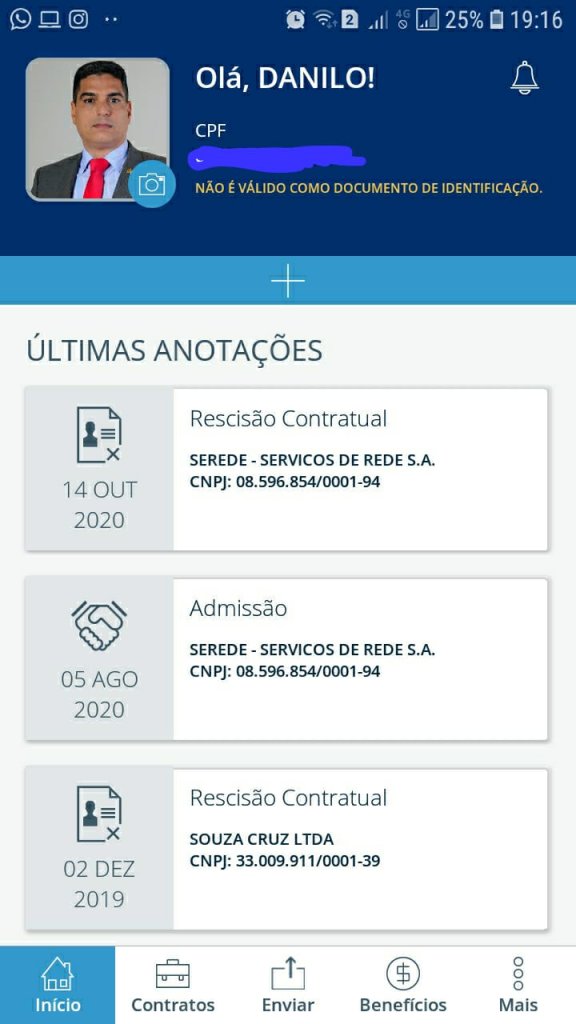 Informações sobre a admissão e rescisão das últimas empresas trabalhadas: