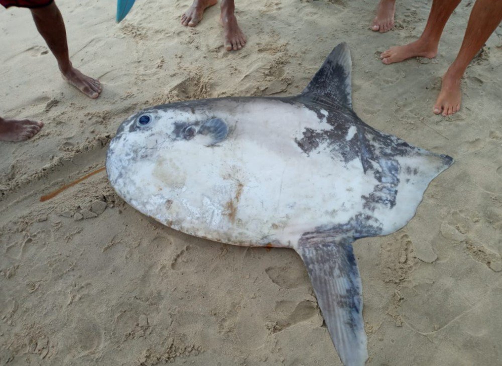 Um peixe-lua, considerado um animal raro, foi encontrado por surfistas e moradores da Praia da Leste Oeste, em Fortaleza. Segundo pescadores, o animal apareceu na areia quando a maré baixou e foi encontrado morto.