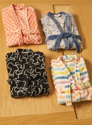 A coleção Casa traz detalhes mais coloridos para sua composição, buscando refletir a personalidade de quem decora. Para isso, opções de estampas florais, geométricas, românticas e em outros formatos dão o tom dos roupões, toalhas e tapetes.