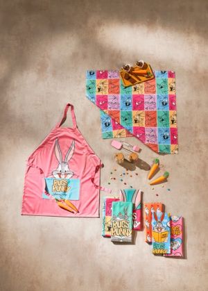 Para as camas, os conjuntos de edredom e lençóis também seguem diferentes padronagens. Para a cozinha, os amantes de personagens recebem a nova coleção do Pernalonga, com aventais e acessórios em tons rosa, verde e laranja.