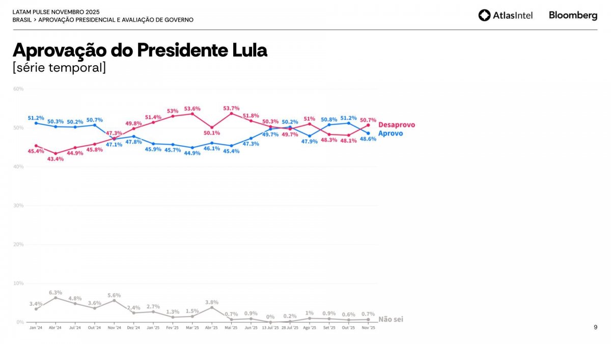 Pesquisa Atlas/Bloomberg: desaprovação de Lula volta a subir em novembro e atinge 50,7%