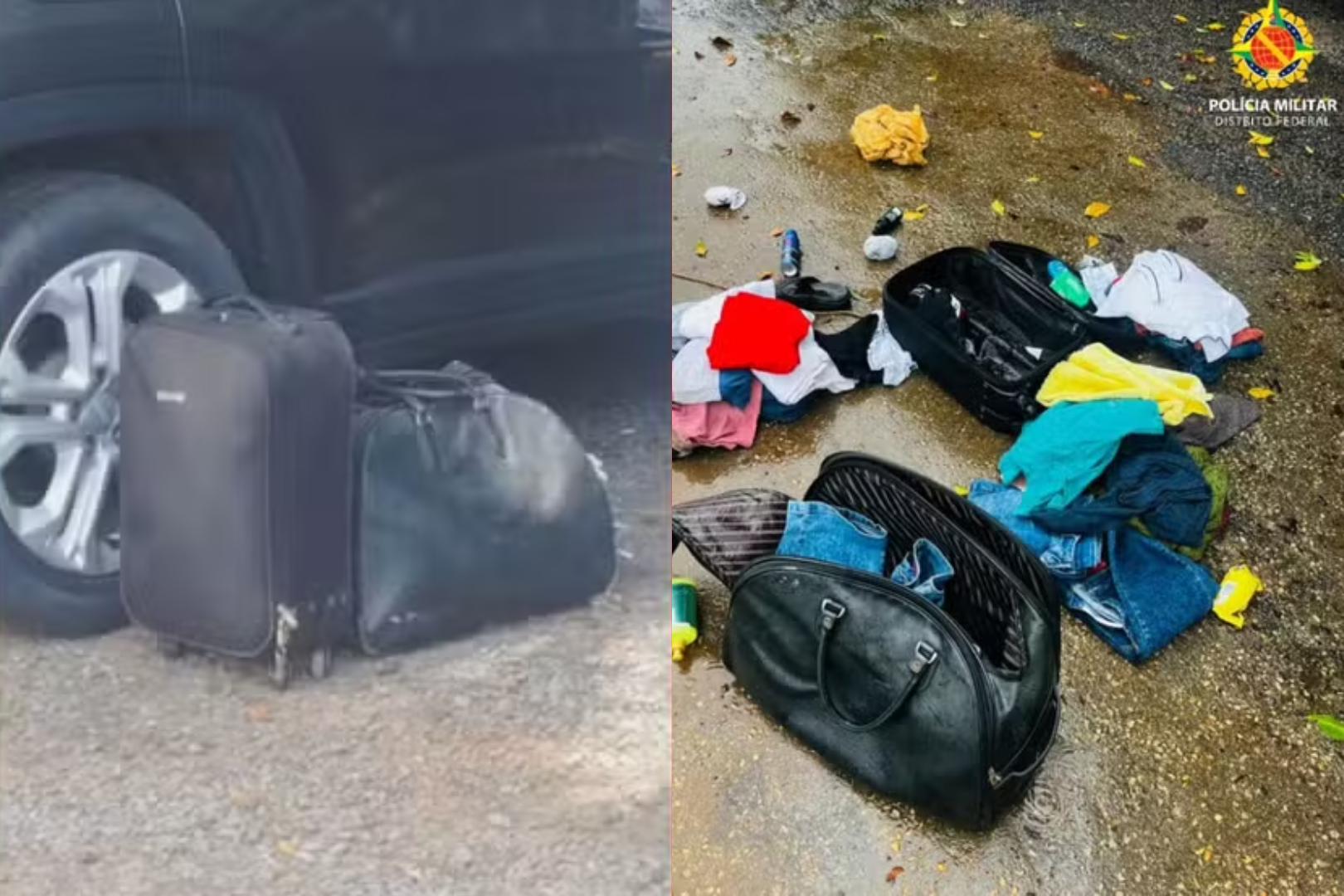 Imagens registradas no local mostram as malas encostadas na lateral de um veículo estacionado na área do ministério.