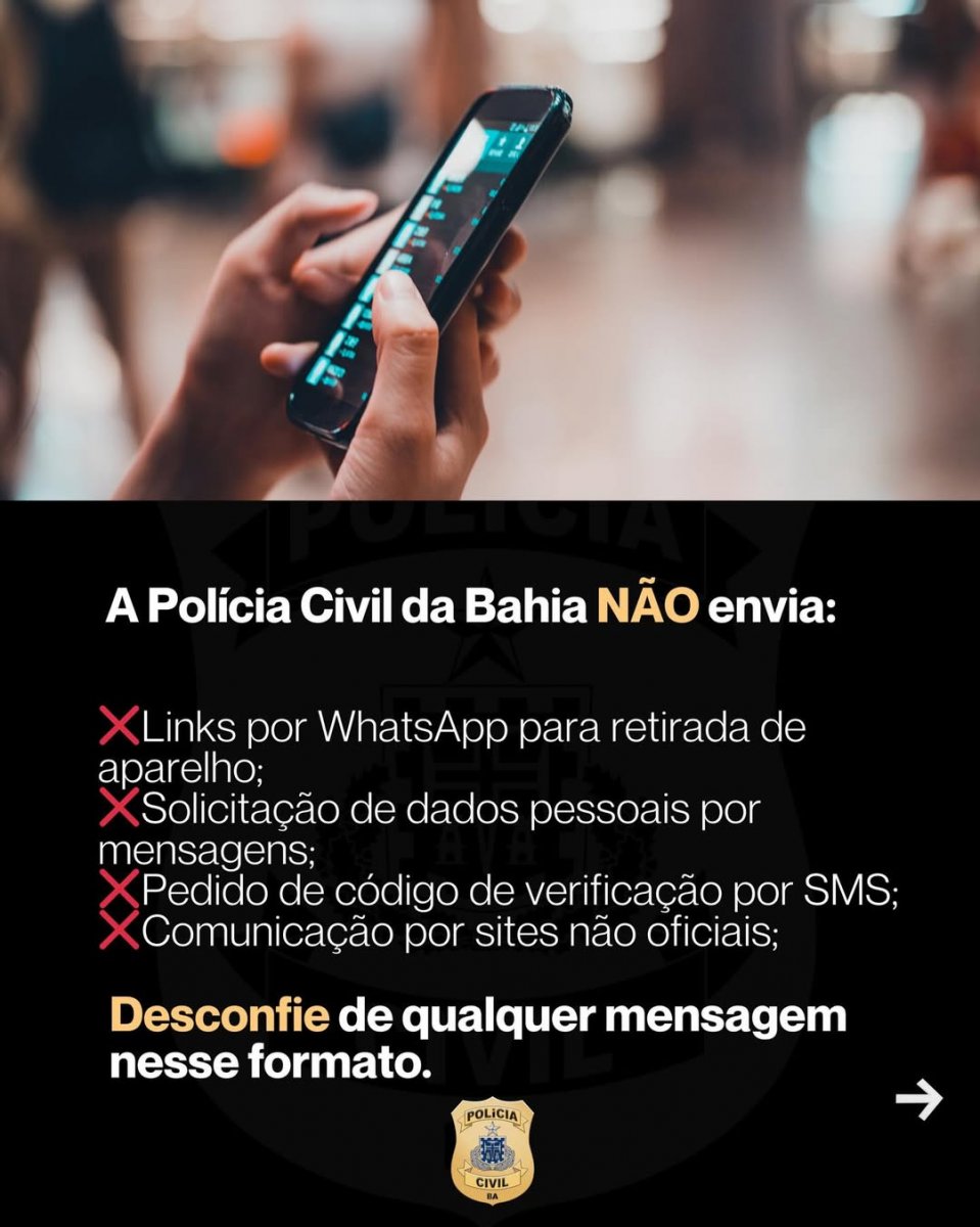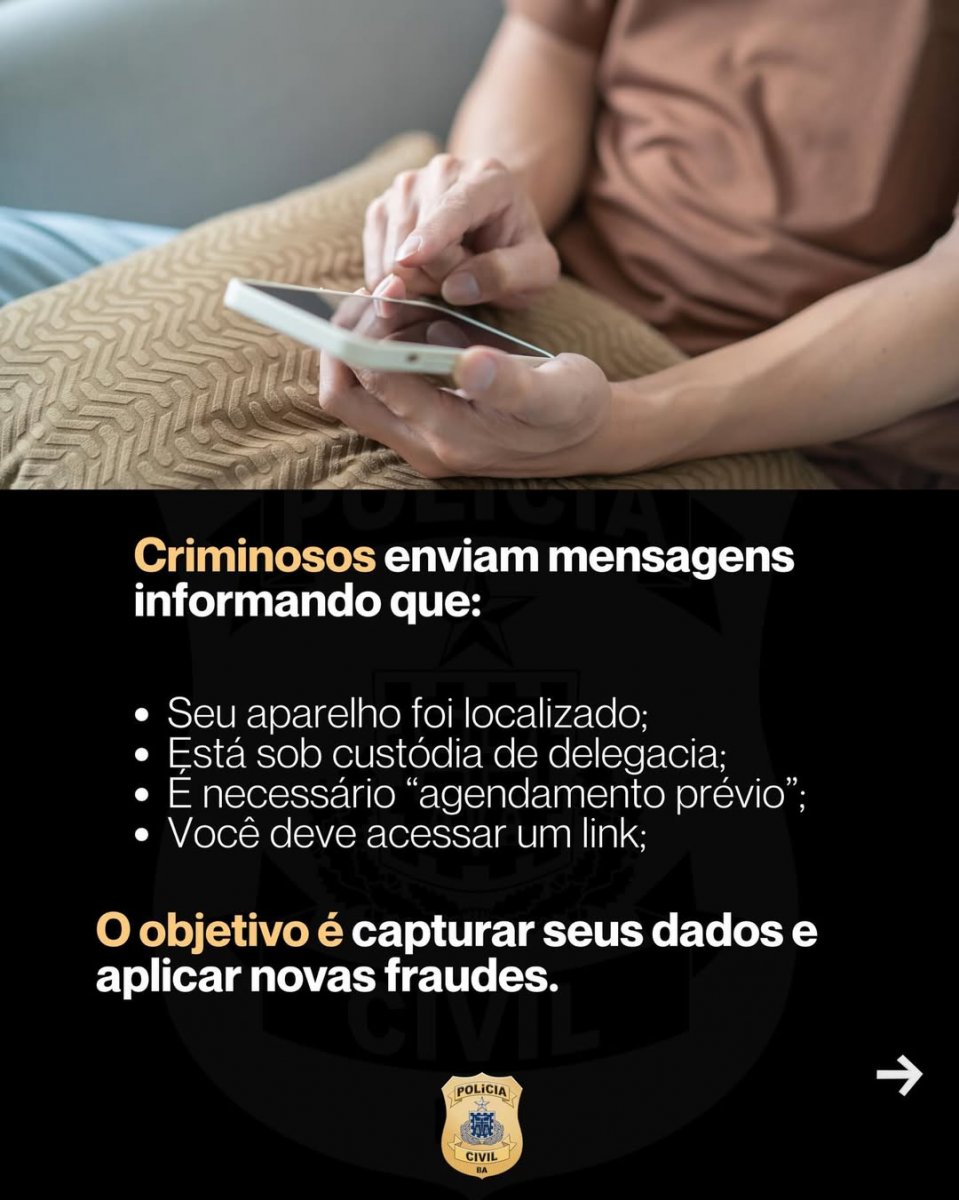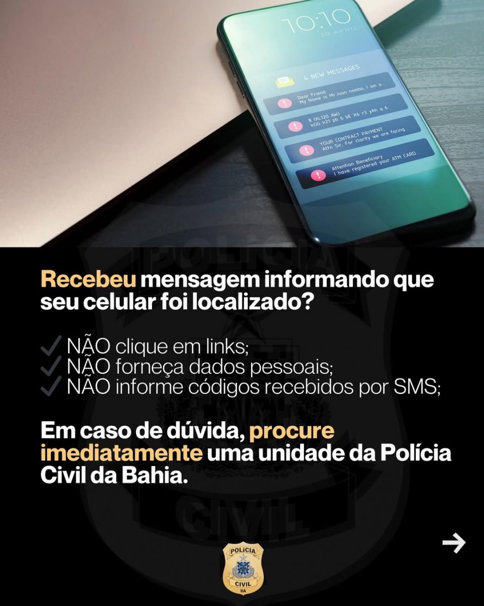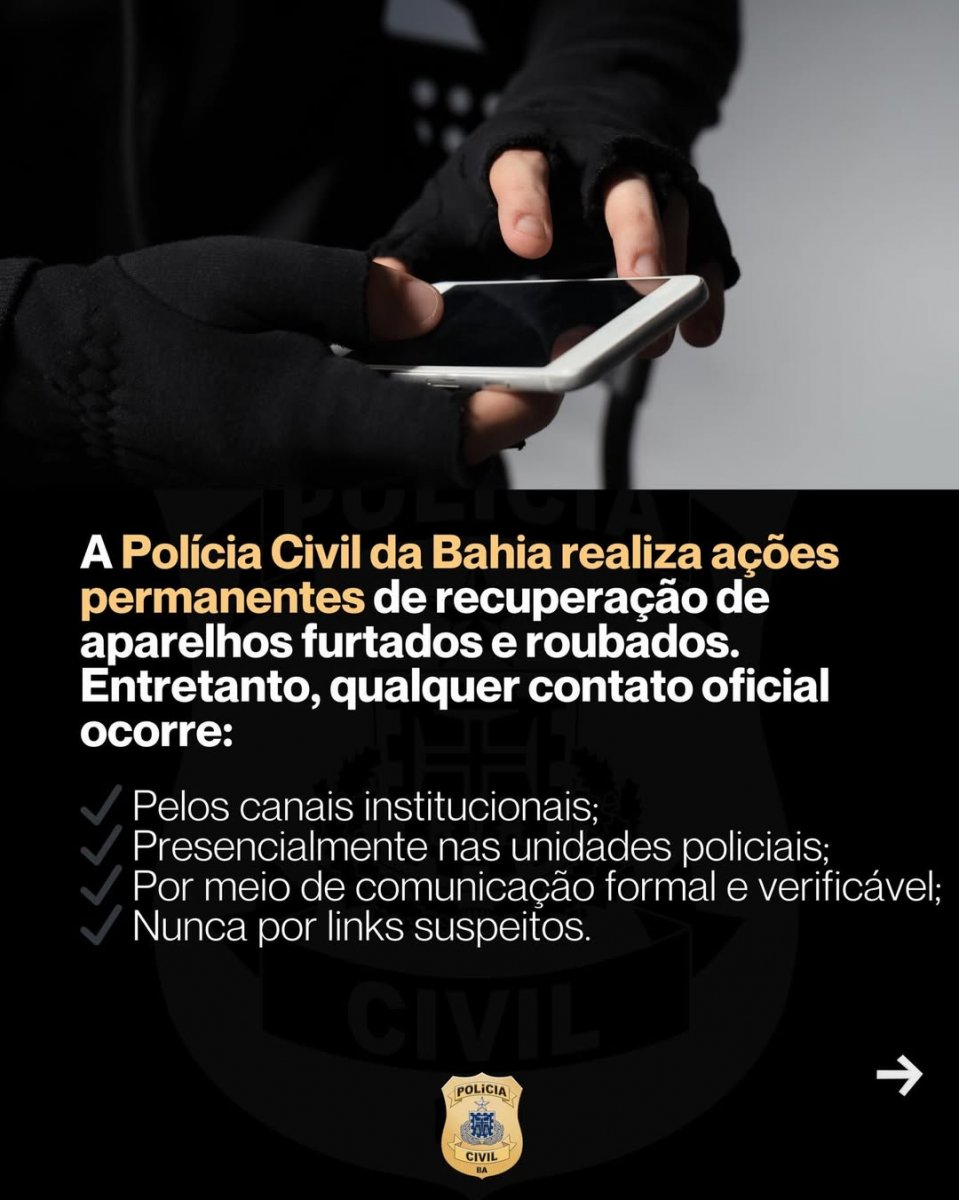 A Polícia Civil da Bahia (PCBA) publicou um alerta, na noite de quinta-feira (19), sobre uma nova prática criminosa que envolve celulares furtados.