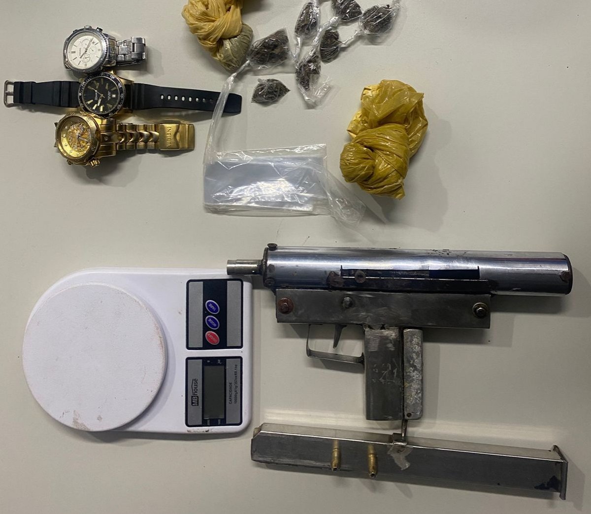 Além da arma, drogas também foram encontradas