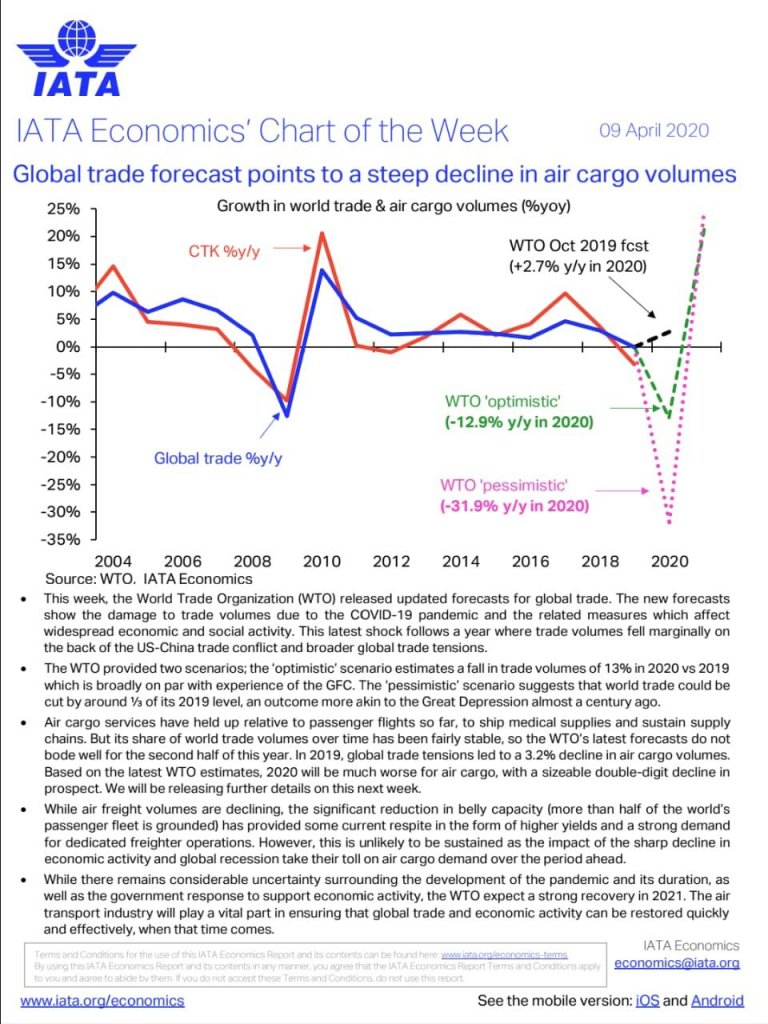 Os serviços de carga aérea se mantiveram em relação aos voos de passageiros até agora, para enviar suprimentos médicos e sustentar correntes. Mas a participação nos volumes do comércio mundial ao longo do tempo tem sido bastante estável, portanto as últimas previsões da OMC não é um bom presságio para o segundo semestre deste ano.