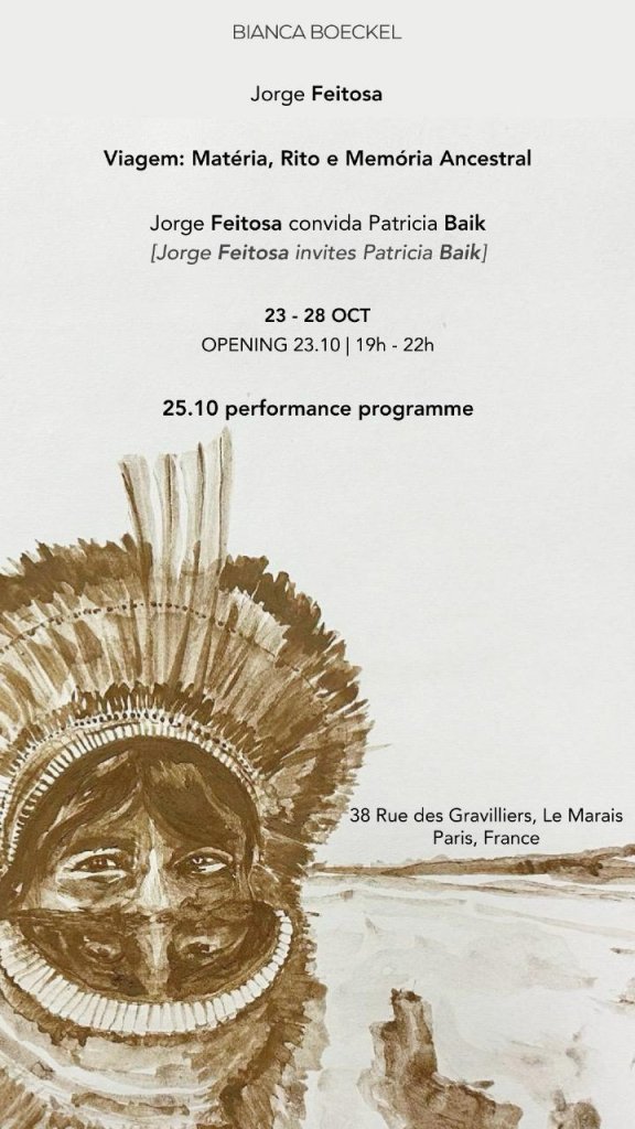 Entre os dias 23 e 28 de outubro, o artista visual Jorge Feitosa apresentará em Paris a exposição inédita Viagem: Matéria, Rito e Memória Ancestral no espaço pop-up da Bianca Boeckel Galeria instalado, pelo segundo ano consecutivo, no 38 Rue des Gravilliers, no Marais, bairro que concentra galerias, museus e a efervescência da cena artística parisiense. Primeira individual do artista rondoniense na capital francesa, a mostra reúne 22 trabalhos produzidos entre 2012 e 2025, incluindo uma série inédita de pinturas, fotoperformances, esculturas e um objeto.