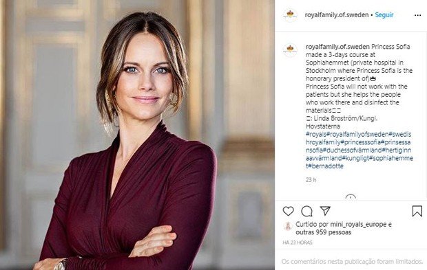 A Princesa Sofia da Suécia vai atuar na linha de frente em hospitais para auxiliar no combate ao novo coronavírus. De acordo com a assessoria, após participar de curso de três dias, ela passará a atuar na desinfecção de equipamentos médicos e instalações, a fim de que os profissionais da saúde possam se dedicar exclusivamente aos doentes.