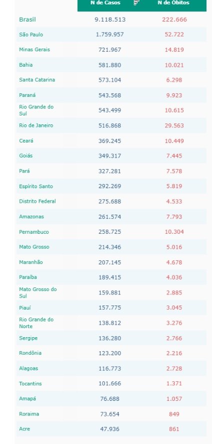Ao todo, o Brasil já possui 9.118.513 infectados e 222.666 casos fatais desde o início da pandemia. De acordo com o Ministério da Saúde, quase oito milhões de pessoas já se recuperaram da doença.