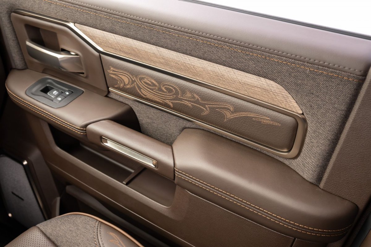 Entre os itens estão bancos em couro com acabamento exclusivo, aplicação de madeira na cabine e retrovisor digital com múltiplas visualizações, útil em situações de reboque, itens já conhecidos na linha RAM.