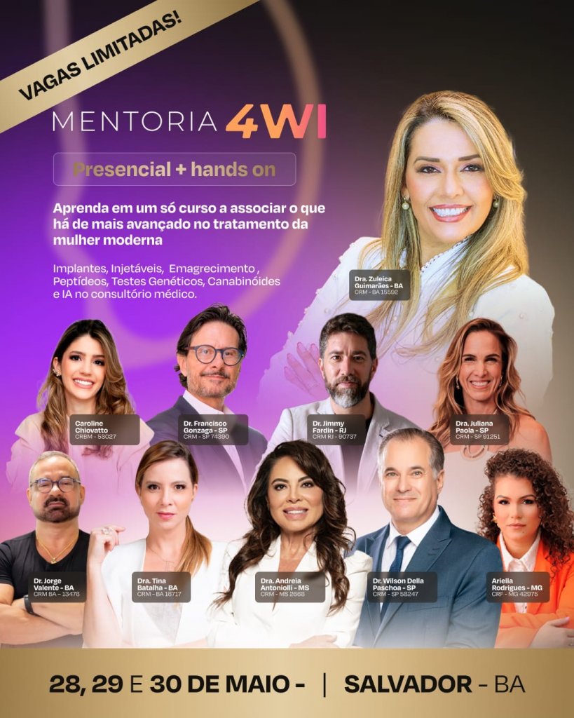 “A proposta da Mentoria 4WI é transformar a prática clínica do médico, oferecendo ferramentas reais para resultados excepcionais na saúde da mulher moderna. Mais do que teoria, entregamos vivência, protocolo e suporte contínuo para que o profissional evolua de forma consistente”, destaca Dra. Zuleica Guimarães.