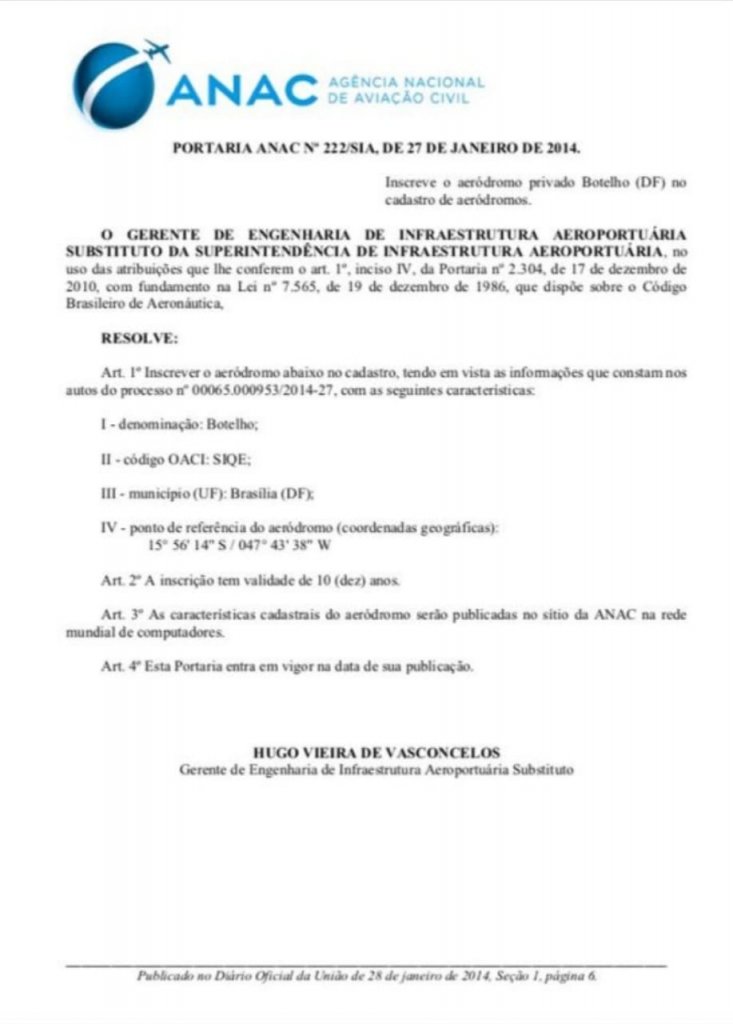 Por meio de nota, Coronel negou as acusações da revista. De acordo com o senador, a pista citada não é clandestina e está registrada na ANAC. O representante da bancada baiana no Senado afirmou ainda que trata-se do aeródromo executivo de Brasília. Confira o registro: