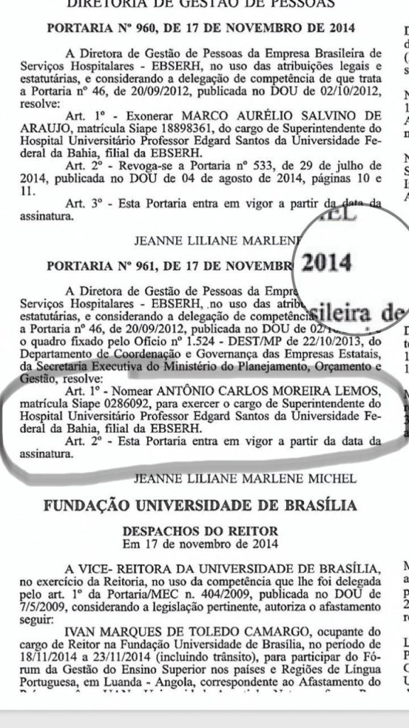 Fontes ouvidas pelo Farol da Bahia informaram que o atual gestor está ainda compondo sua equipe de transição, tendo à frente o Professor Marco Aurélio Salvino , ex-Superintendente pro tempore ( 2014 ) , médico licenciado  da EBserh e Onco Hematologista