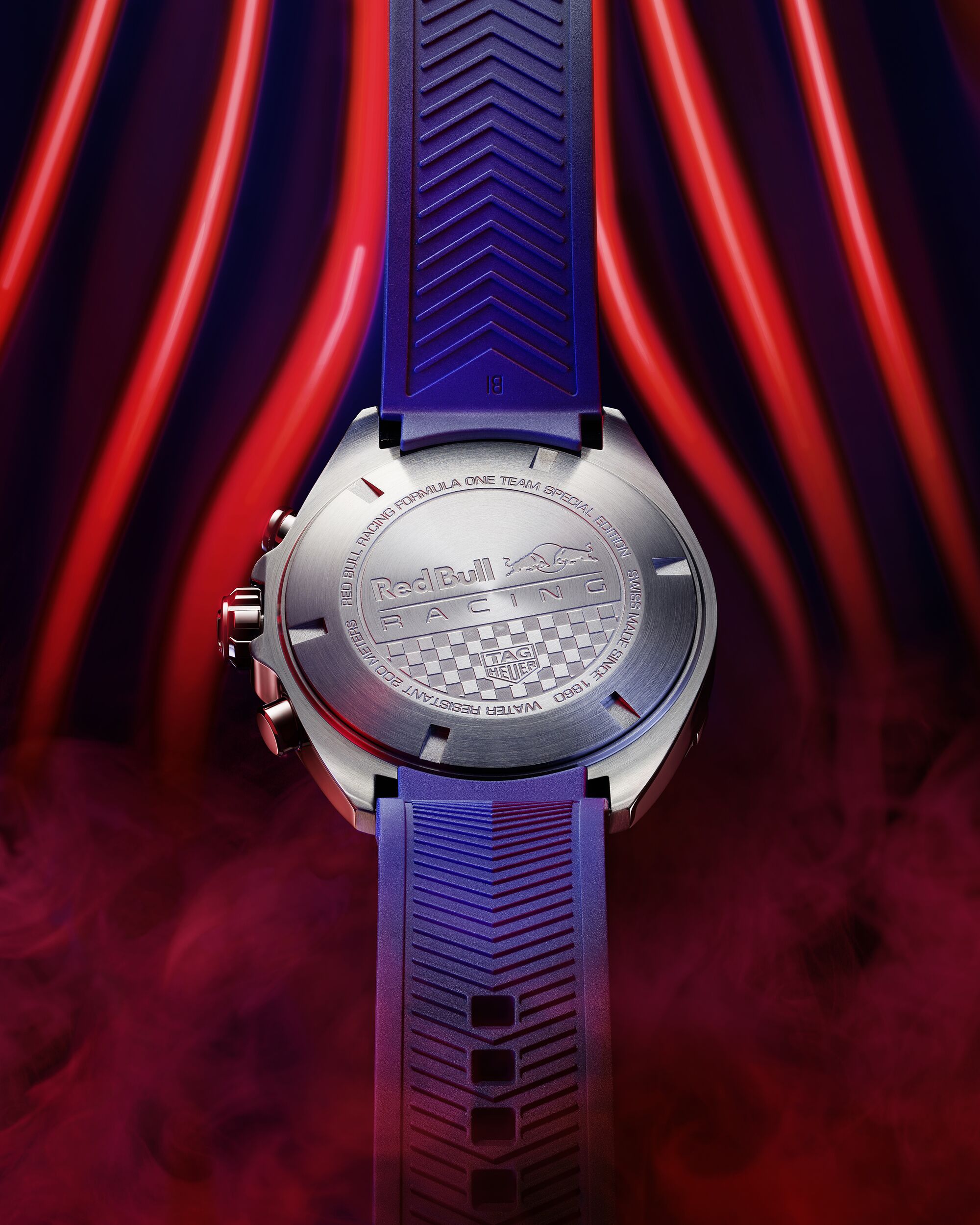 Ao criar esta edição especial, os designers da TAG Heuer trabalharam de perto com a equipe da Red Bull Racing para co-criar este relógio único usando todos os códigos gráficos da equipe de Fórmula 1.