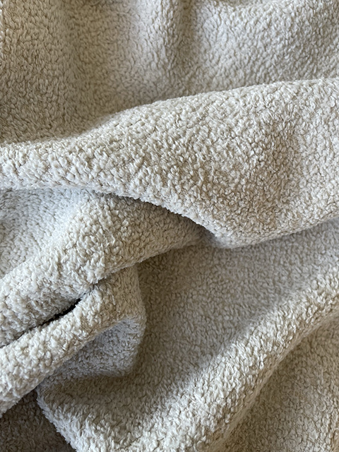 Palavra de origem francesa, o bouclé ganhou notoriedade quando a aclamada estilista Coco Chanel adotou o material para criar o marcante conjunto de alfaiataria composto pelo casaco e saia, durante os anos de 1950. Na fluidez dos caminhos que cruzam a moda e a decoração, conquistou o mundo com sua composição de fio retorcido, trançado em ciclos, formando arcos regulares | Foto: Tati Ogava |