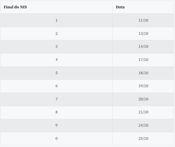 Oficialmente, o calendário do Auxílio Brasil prevê o pagamento aos beneficiários de NIS 9 na segunda-feira (24). No entanto, desde setembro, os beneficiários que recebem o Auxílio Brasil às segundas-feiras poderão movimentar o dinheiro a partir do sábado anterior.