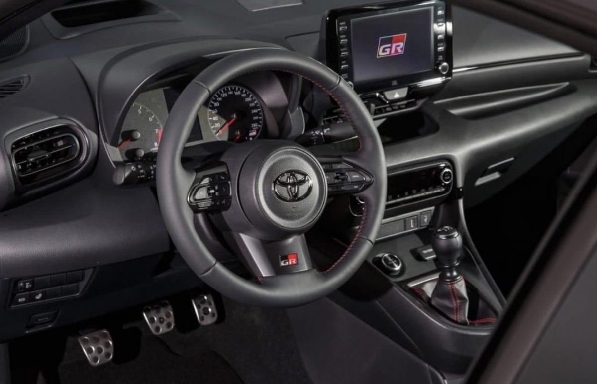 Nas imagens divulgadas pela marca o GR Yaris tem o painel com uma ampla moldura e porção central voltada ao motorista incluindo console, câmbio e multimídia na versão automática. A versão manual tem o painel mais tradicional com moldura arredondada sobre os instrumentos e multimídia flutuante.