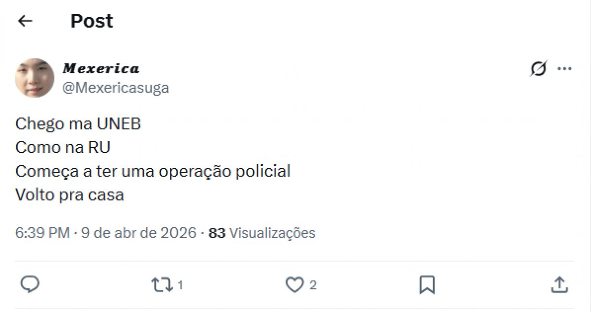 A Universidade Estadual da Bahia (UNEB) evacuou estudantes e suspendeu as aulas na noite desta quinta (9), após operação policial que aconteceu no campus da instituição, no bairro do Cabula. Segundo informações preliminares e que circulam no X, três pessoas foram detidas no departamento de Ciências da Vida.