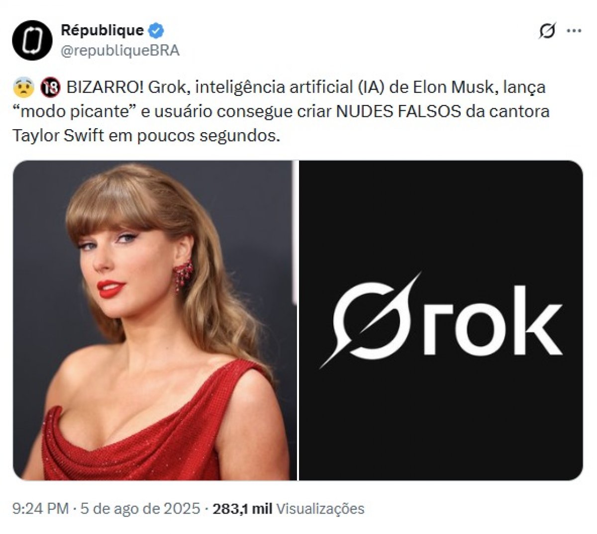 Dezenas de homens usuários do X, antigo Twitter, têm usado o Grok, o sistema de inteligência artificial da plataforma para gerar imagens de mulheres e meninas que usam a rede social em trajes íntimos ou mesmo sem roupa. Entre as vítimas estão artistas, como a cantora Taylor Swift. O assunto chamou a atenção de especialistas em Segurança e Direitos Humanos durante todo o final de semana.